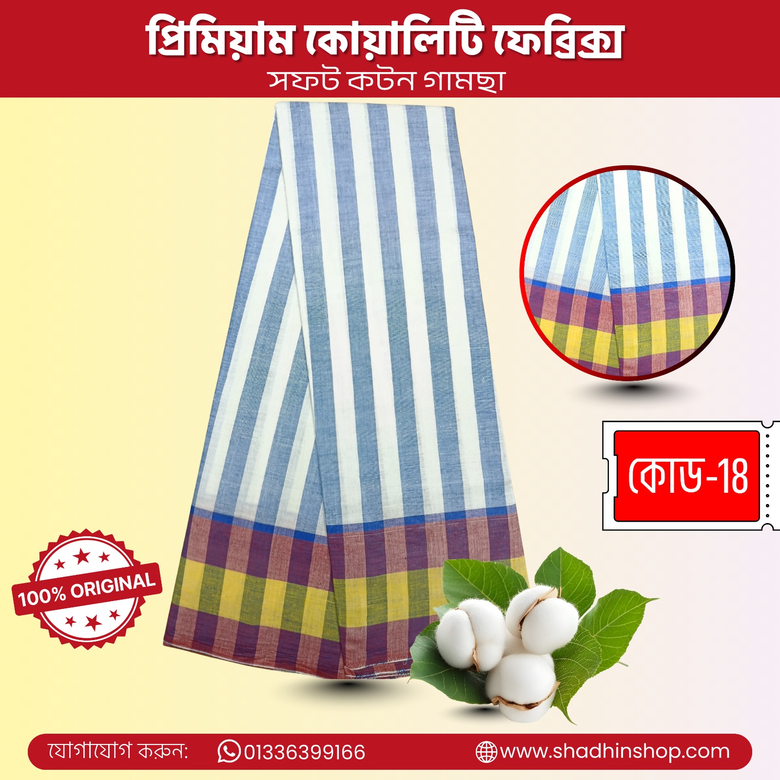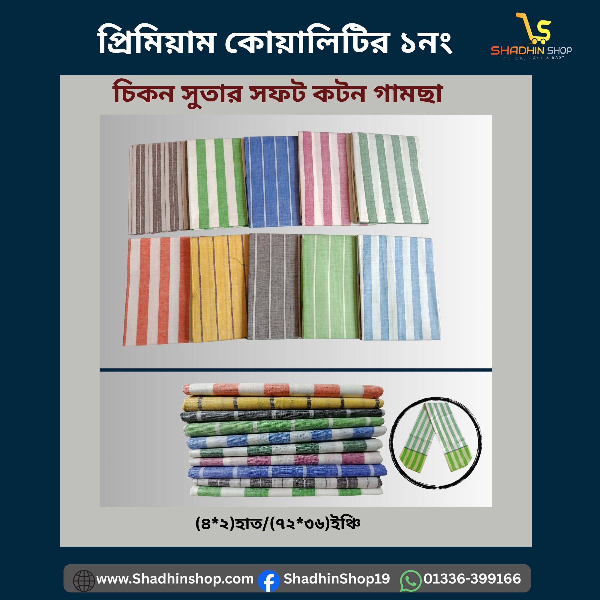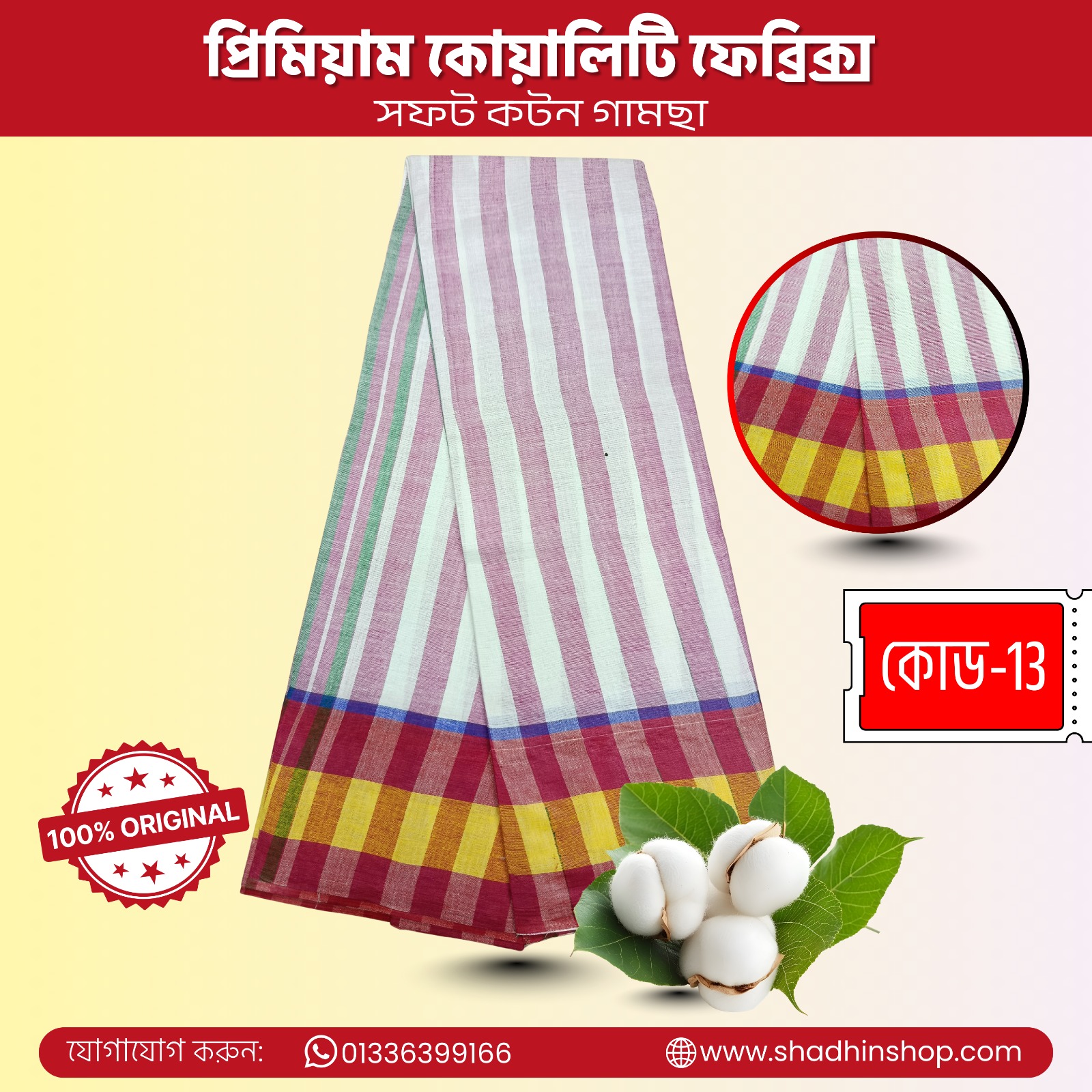 বাংলার ঐতিহ্য সফট কটন গামছা, আরামদায়ক পোশাক যা প্রিমিয়াম সুতি এবং সেলাই করা বহু রঙের কাপড় দিয়ে তৈরি, যা গরম এবং আর্দ্র আবহাওয়ার জন্য উপযুক্ত।
