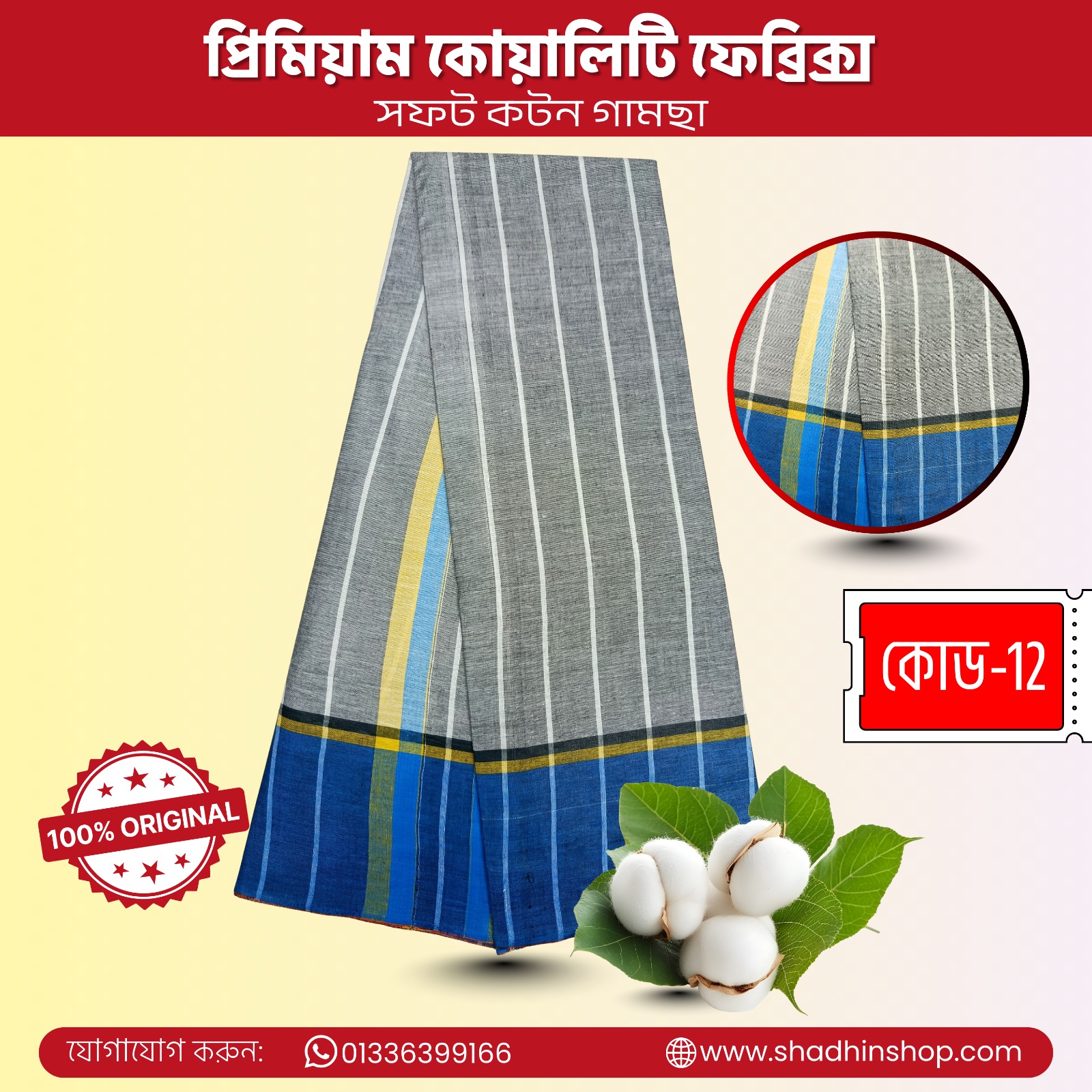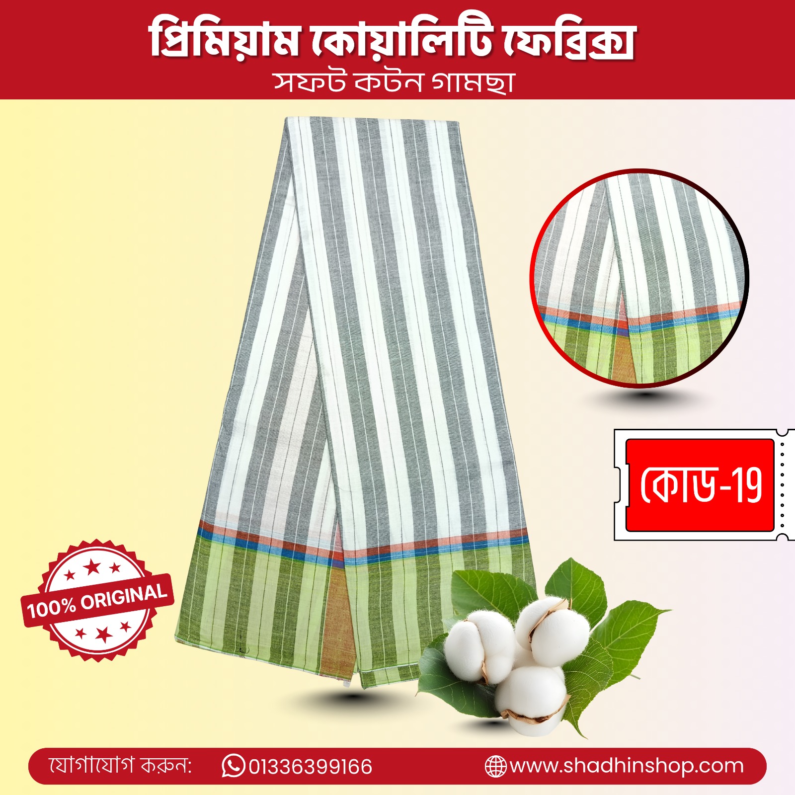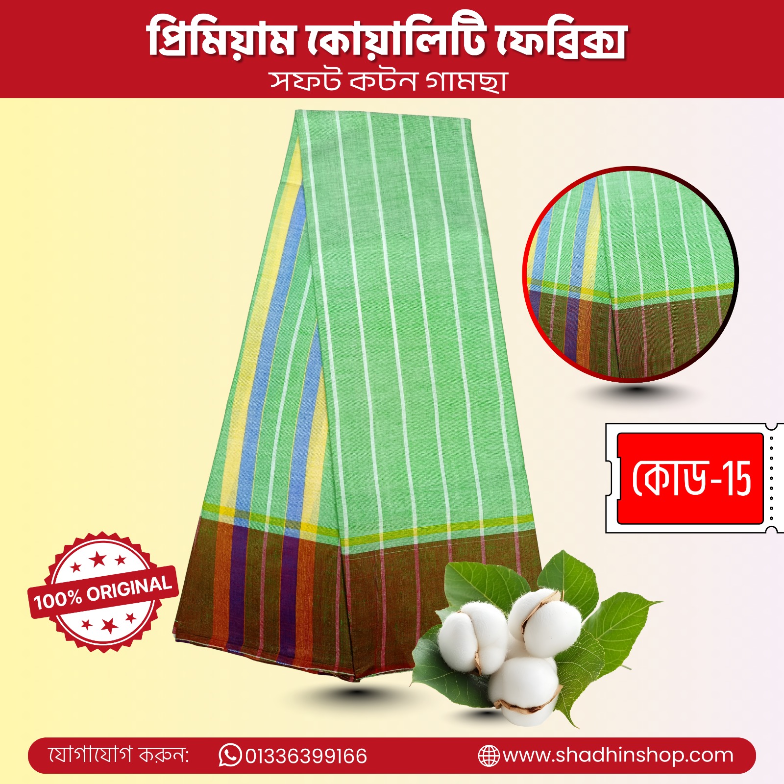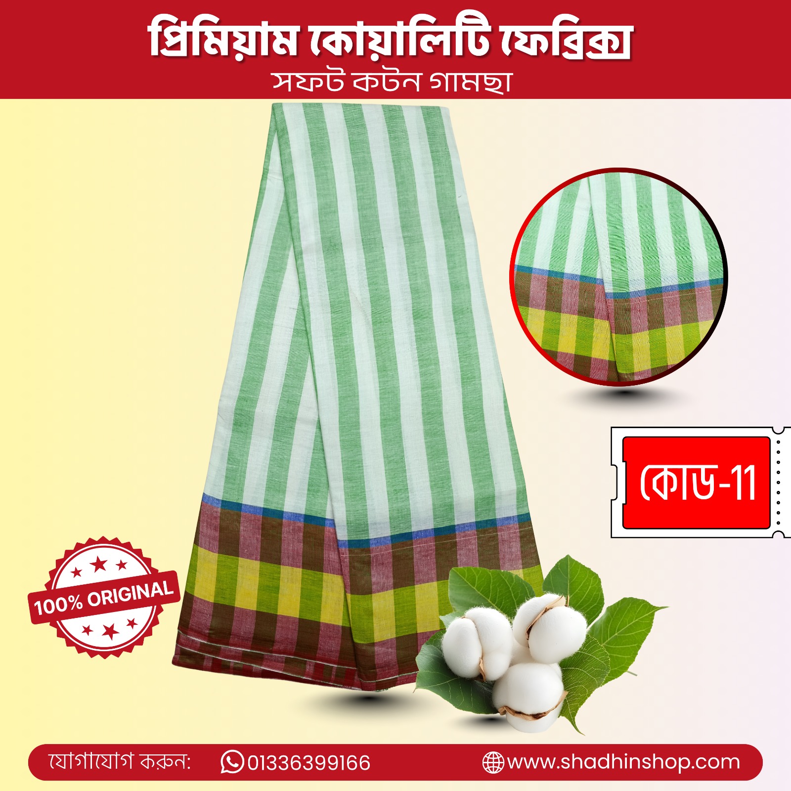বাংলার ঐতিহ্য সফট কটন গামছা, আরামদায়ক পোশাক যা প্রিমিয়াম সুতি এবং সেলাই করা বহু রঙের কাপড় দিয়ে তৈরি, যা গরম এবং আর্দ্র আবহাওয়ার জন্য উপযুক্ত।